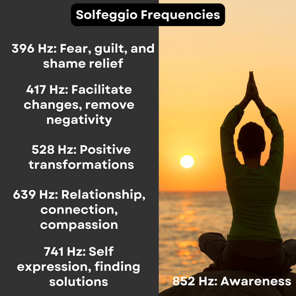 Solfeggio frequencies are specific types of soothing sounds believed to have positive effect on human mind and body. There are 9 solfeggio frequencies, each offering a different benefit.